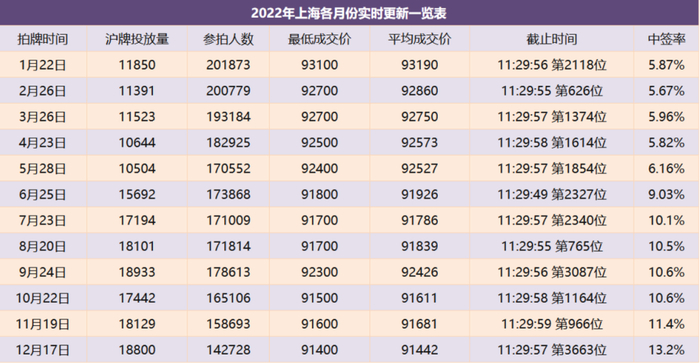以上海为例,如今个人车牌在91000元~93000元的区间内平稳波动外,单位车牌2022年全年平均成交价约为15万元,相比2021年成交价17万元低了2万。