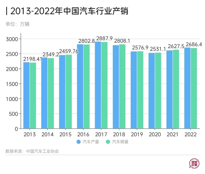 2013年至2017年,我国汽车年产量和销售量达到2901.54万辆和2887.89万辆,多年蝉联世界造车辆第一,成为全球汽车产销大国。