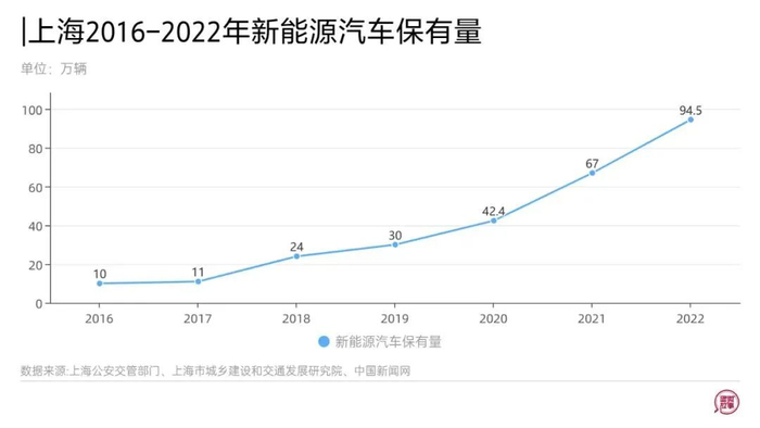 2022年,上海新能源汽车保有量更是达到94.5万辆,相较于2018年《实施办法》未颁布前新增859%。