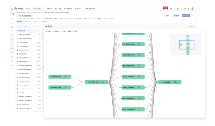 组件集成快:提供BuildFlow编排模式,多任务并行构建,实现多组件的高效集成