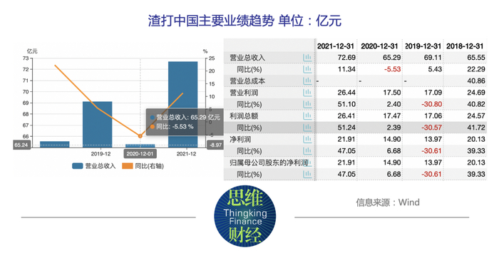 数据显示,2018年-2021年,渣打中国分别实现营业收入65.55亿元、69.11亿元、65.29亿元、72.69亿元,分别实现归母净利润20.13亿元、13.97亿元、14.90亿元、21.91亿元。整体来看,尽管近些年来渣打中国的营利能力有所增长,但也存在较大波动(见下图)。