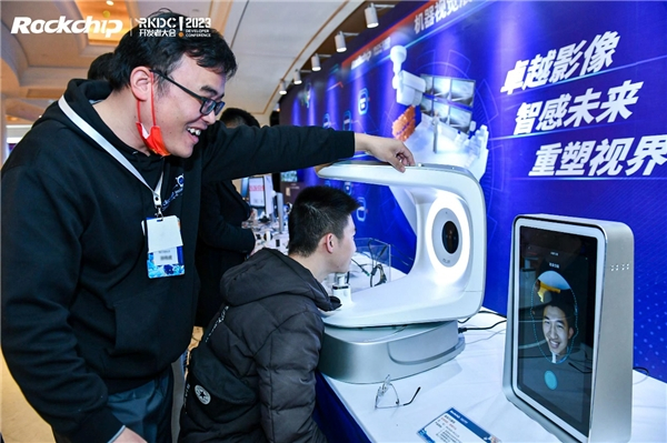 在机器视觉展区,展出了多款基于瑞芯微机器视觉方案RV1103/RV1106/RV1108/RV1109/RV1126的前端及后端应用,涵盖IPC、门禁闸机、智能门锁、3D结构光模组、车载影像等,采用一系列瑞芯微自研技术包括星光ISP、智能算法、低功耗快启、智能压缩编码、双目融合拼接、数字防抖等。