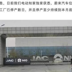 2 月 27 日消息,今日早间,有消息称蔚来汽车位于合肥市经济技术开发区的江淮蔚来工厂已停产数日,并且停产至少持续到本月底,具体何时开工目前还无法确定。