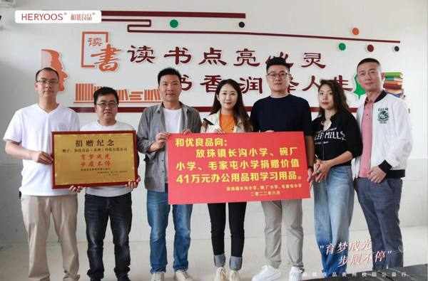2022年6月25日,和优良品HERYOOS创始人张文峰先生、总裁星悦女士、总监张宇先生等一行人前往贵州省毕节市七星关区放珠镇开启“育梦成光,步履不停”的校园公益行 。慈善的事业是永无止境的,也是共同富裕思想号召下的企业自觉责任,和优良品会一直守候这些萤火之光,期待他们汇聚成星河。