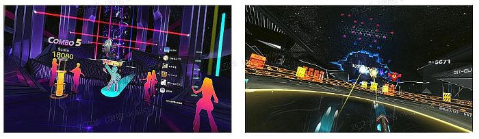 基于整场演出故事背景的设定,以及PICO 4 VR一体机提供的6DoF精准头手空间定位能力,在演出过程中,PICO设计了诸多闯关挑战环节,用户需要通过节奏舞蹈以及音乐射击等音游玩法完成各种挑战,以更具能量、更具活力、更具想象的创新形式,点燃用户的活力与激情。