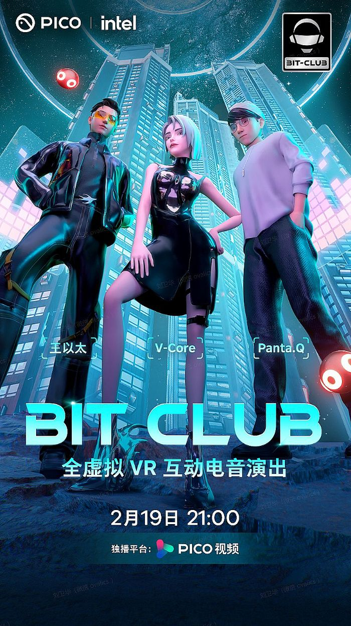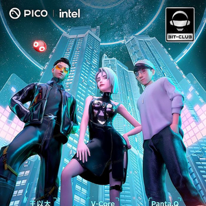 2023年2月19日,PICO 推出了全球首款VR音乐互动产品BIT-CLUB,并同步上线了一场以“星际电音俱乐部”为主题的全虚拟VR互动电音演出。演出邀请了当红Rapper王以太、百大DJ Panta.Q 及虚拟DJ V-Core,为用户带来精彩的狂欢派对。