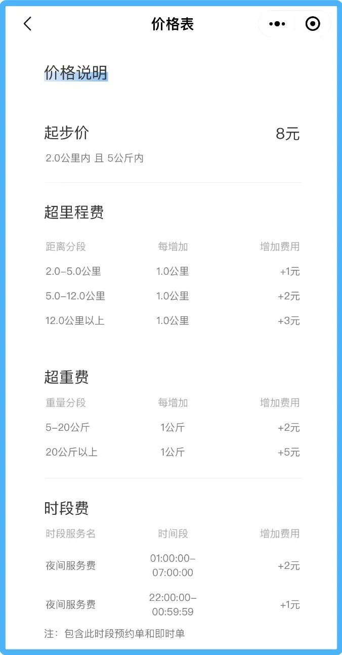 一支高效、实惠的外部配送团队,这时候就成为了中小外卖商家的迫切需求。或许是率先了解到了这部分群体的需求,抖音于去年12月与顺丰同城、闪送、达达、UU跑腿等配送方合作达成了合作。虽然彼时的目的是服务抖音“团购配送”服务,随着业务逐步拓展,这些平台也开始将服务拓展至“外卖到家”业务。据向南介绍,商家开通“外卖到家”服务时一旦签署了相关协议,就会默认使用合作运力,“只要有订单过来,不用自主呼叫,平台会主动派单,跟美团外卖、饿了么一样,商家只管做商品。”他提供的一份配送价目表显示,上海地区起步价2公里5.6元,11公里内每增加1公里,加价0.9元;非常时间段还会有2元或3元不等的加价。“现在运力配送费可能要比美团外卖、饿了么稍贵一点,但不会太多。”向南说。