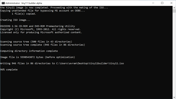 9、等待几分钟,就可以在Tiny11 Builder文件夹中得到一个tiny11.iso的镜像文件,将它做成U盘启动盘,就可以安装了。