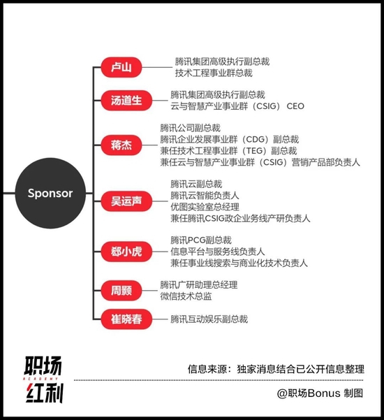 项目的赞助支持人员更是堪称腾讯豪华阵容。值得注意的是,除了能看到TEG、PCG、CSIG力量的参与,微信和互娱的也出现在名单人员的业务覆盖面内。