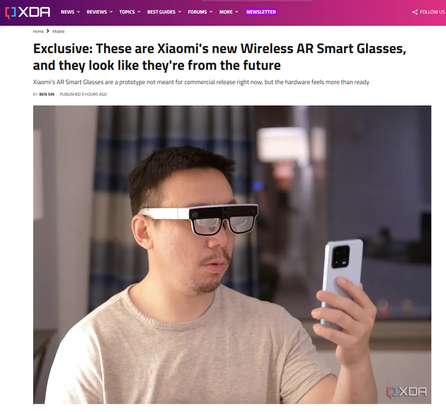 今日,外媒 XDA 对该设备进行了上手体验,揭露了小米无线 AR 眼镜探索版的一些细节。