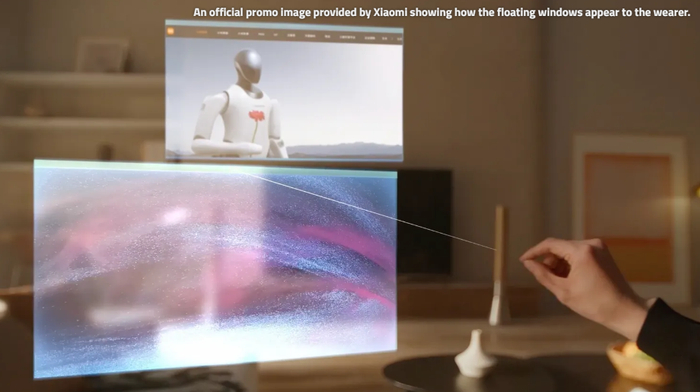 在演示期间,小米展示了三个 AR 测试应用。第一个是运行一个交互式虚拟桌面,使用者可以在其中打开多个窗口并将它们“映射”面前的真实世界环境中。