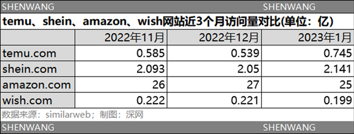 从最近三个月访问量来看,美国老牌本土电商网站Wish如今已被TEMU和另一家来自中国的公司SHEIN远远甩在身后。