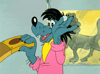 而电视里播放的内容,是1969年首播的苏联动画短片:《兔子等着瞧》(Ну, погоди!)。