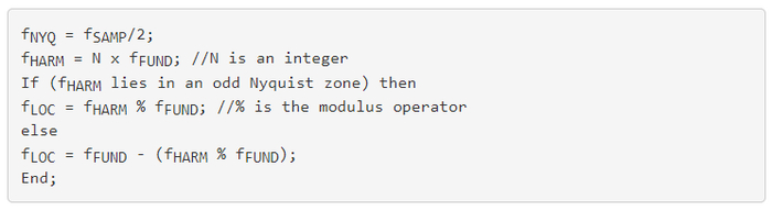 以下运算用于计算第一奈奎斯特频带中的不同谐波: