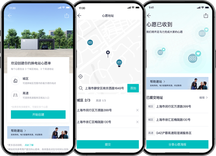蔚来 NIO App 换电站心愿单功能正式上线:建在哪儿由你来定