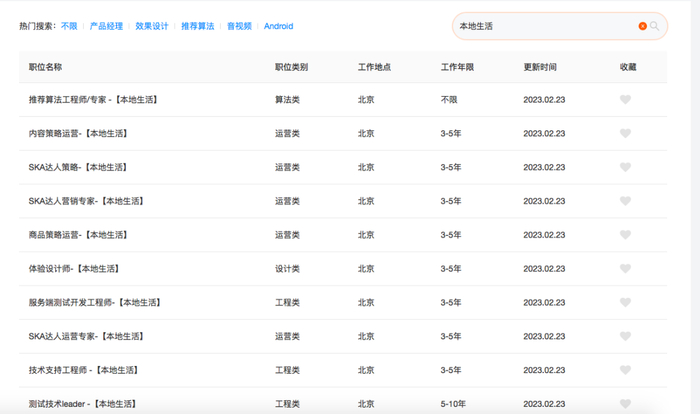 另外,快手也在加速奔跑。2022年秋天,快手将本地生活提升至一级部门,并将此前负责快手电商的负责人笑古,调任本地生活业务负责人。此后,快手本地生活团队规模迅速扩张。亿邦动力调查发现,今年2月份以来,快手本地生活部门陆续发布多项与技术、产品、运营、体验相关的招聘岗位,布局四大城市超50个岗位。