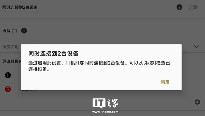更新到 2.0.0 固件后,IT之家小伙伴可以在耳机设置应用中找到“同时连接到 2 台设备”开关,打开之后即可体验。
