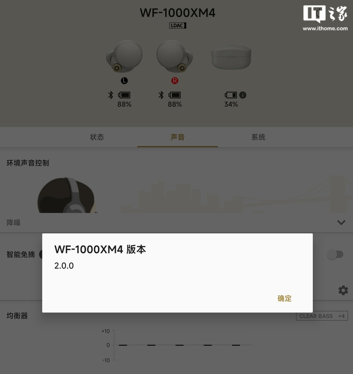 索尼 WF-1000XM4 降噪豆推送 2.0.0 固件,新增支持同时连接 2 台设备