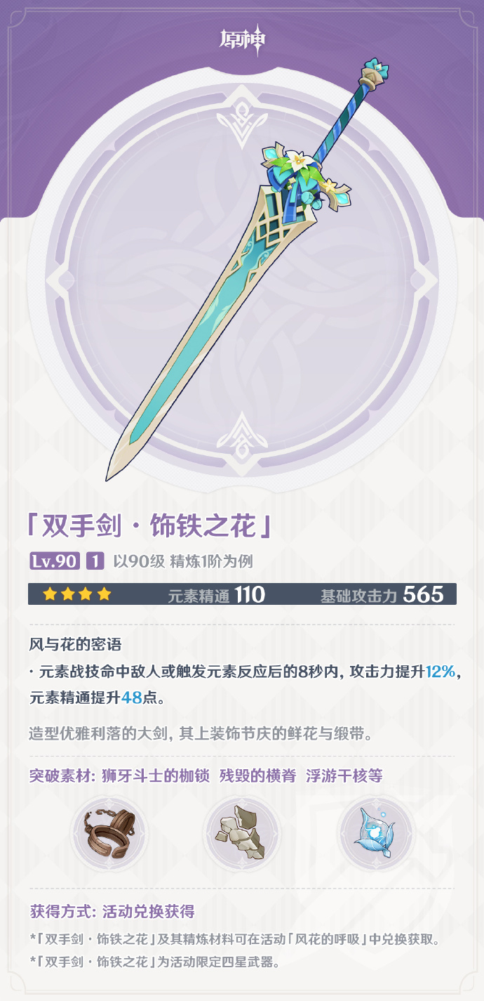 「双手剑・饰铁之花」(★ 4)