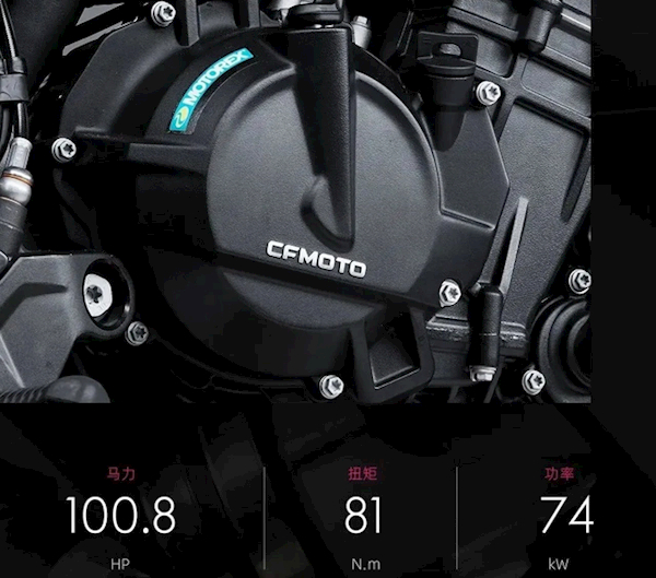 动力部分算是新车800NK的最大亮点,发动机采用实际排量799cc的直列双缸发动机,最大功率74kw在9000转速时爆发(最大马力高达100.8HP),而最大扭矩81N·m则是在8000转速时就能爆发。