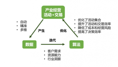根据魏朱商业模式的定义,商业模式是经营活动系统及利益相关者的交易结构。驱动模式升级的内核就是将企业经营过程中的活动进行拆解,并对其承担主体、运行方式和交易结构进行优化。因此,企业从事的各种“活动+交易”是商业模式的底层要素。数字化时代,以供应链金融科技为代表的新技术手段的应用,使商业模式设计的底层要素除了“活动+交易”以外,出现了“数据”和“算法”两大要素,这些要素层层相扣,不断优化和升级。企业经营活动和交易中产生的数据,通过形成算法,进一步指导企业优化活动和交易结构。在供应链金融科技的作用下,“活动+交易”产生数据,基于数据不断优化企业决策算法的路径被继续强化,从而为进一步优化商业模式提供了更大的空间。