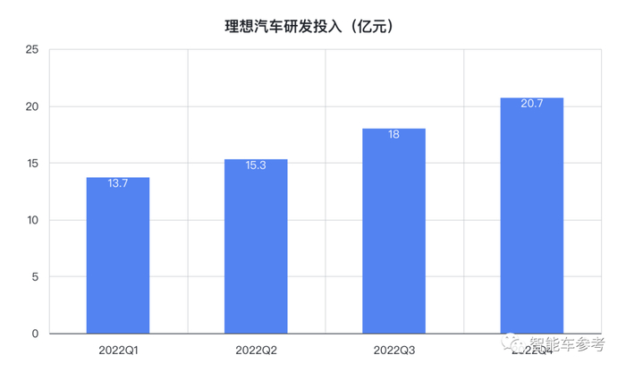 此外,理想还在一直加大研发投入,2022年全年研发投入67.8亿,同比增长106.3%。