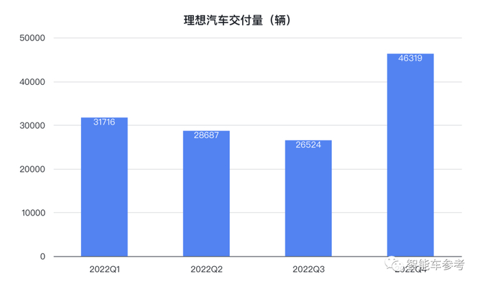 从交付来看,理想第四季度交付46319辆,较上一季度增长74.6%,约占全年交付量34.8%。
