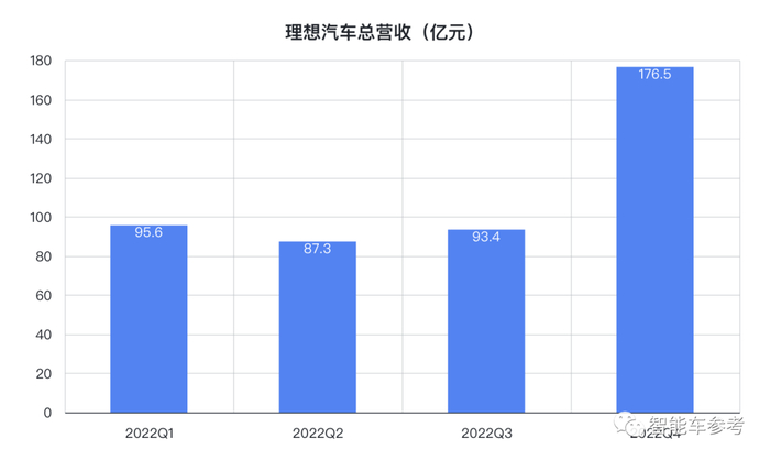 因此,理想第四季度汽车销售收入172.7亿,同比增长66.4%,环比增长90.8%。