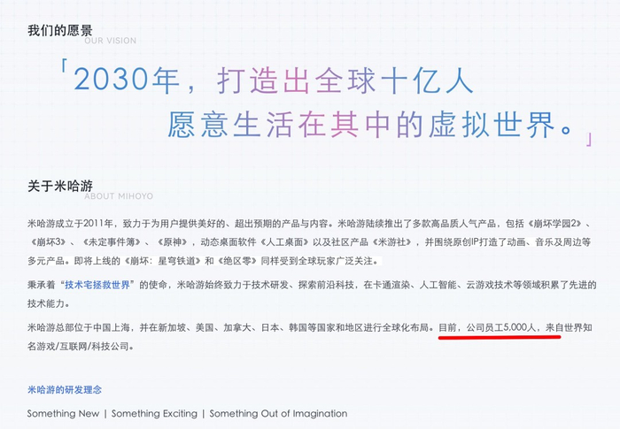 日前,有网友发现,在米哈游官方介绍中,公司员工总数重回5000人。