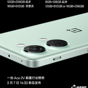 一加 Ace 2V将在3月7日正式发布,这款手机延续着一加 Ace 2的颠覆性,在存储方面普及大内存+大存储,基础版就有12GB+256GB的大存储规格,最高提供16GB+512GB旗舰级存储。