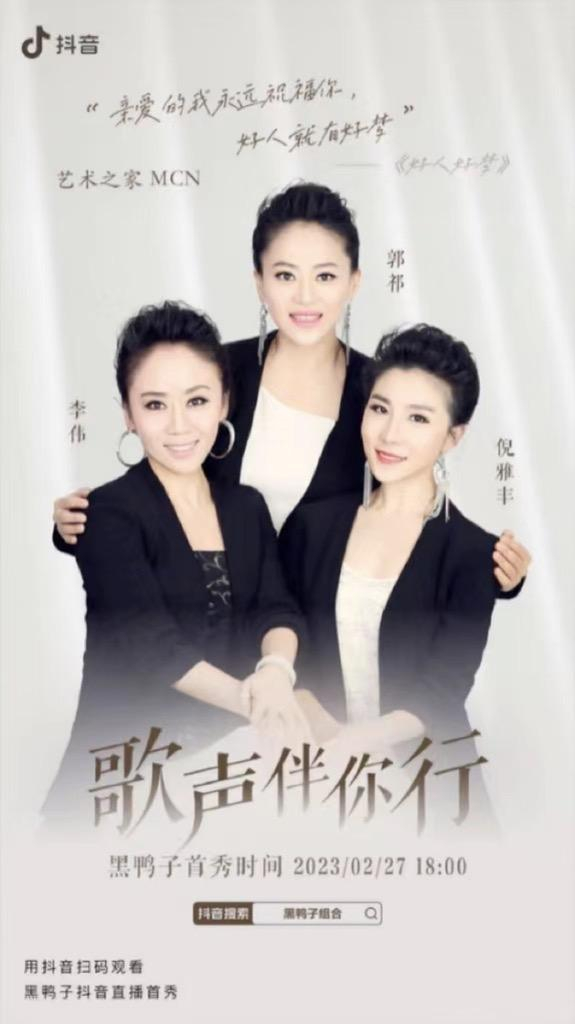 对于歌手而言,和声的加入,会让声音更有表现力,并且歌曲情感表达更丰富。而提到和声歌手,相信大多数80后、90后甚至60后、70后都会不约而同地喊出“黑鸭子”这个名字。作为内地最早最著名的演唱组合之一,黑鸭子凭借轻盈曼妙的歌声受到了大众的追捧和热爱,堪称“内地最美和声组合”。2月27日晚,黑鸭子组合惊喜现身抖音直播间,举办了「歌声伴你行」音乐会,这也是黑鸭子组合出道二十多年来首次通过直播与歌迷见面。演出中,三位成员歌手经典献唱精彩不停,更有付笛声、江涛及著名主持人王为念通过连线为其助阵。整场直播,观看人数持续上升,点赞量突破200万,实现和声歌手线上演艺再“出道”。