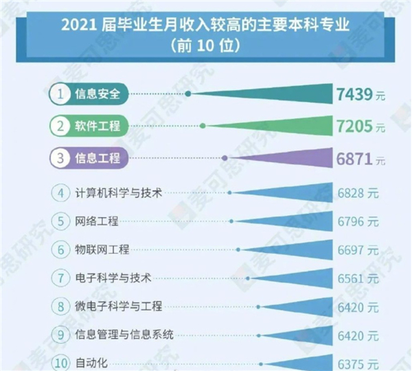 此外,麦可思研究院发布的《2022年中国大学生就业报告》在毕业后半年内收入最高的列表里,涵盖的专业则基本都是如信息安全、软件工程、网络工程、等热门理科专业。