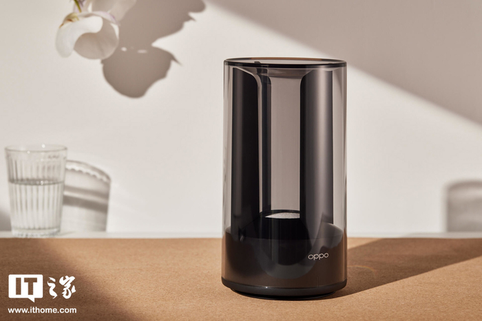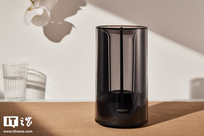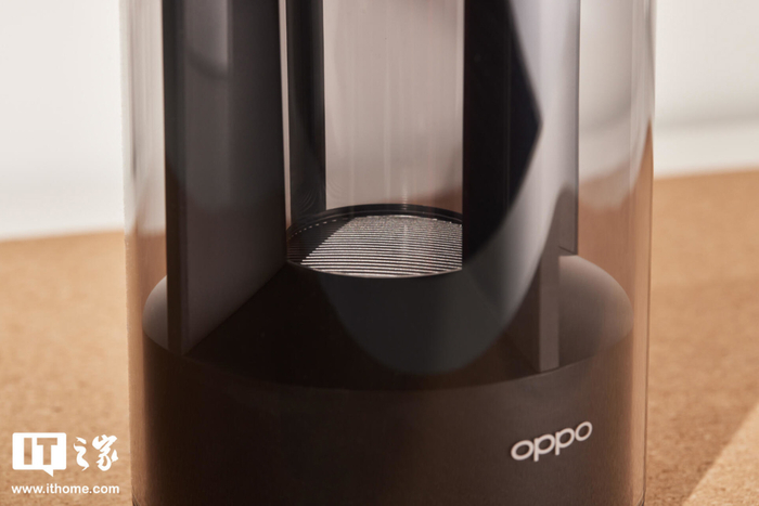 OPPO Wi-Fi 6 路由器 AX5400 整个圆柱体的机身也采用了半透明的设计,路由器的天线被隐藏在柔美曲线的外壳内部,呈现出了一种非常和谐的美感。