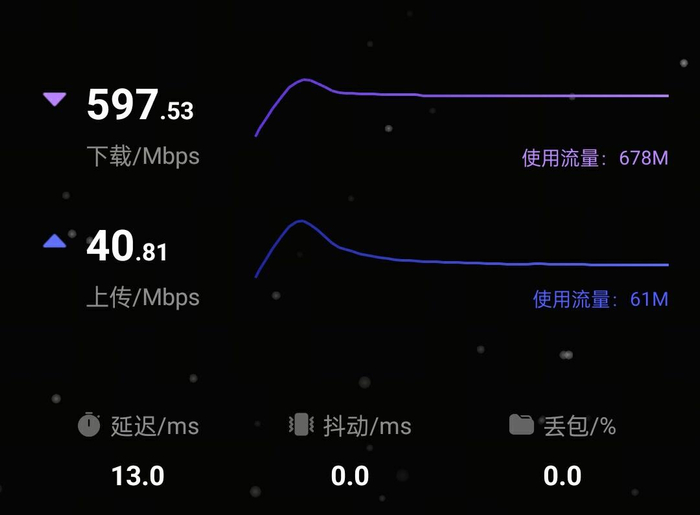此时网速达到了 595.48 / Mbps,跑满了 500M 的电信宽带不说,竟然还有将近 100Mbps 的增速,且经过了多次测试,下载速度都在 590Mbps 左右。此前IT之家评测室也曾遇到过这种“增速”的情况,能出现这么大的测试结果,原因就是运营商给提速了。