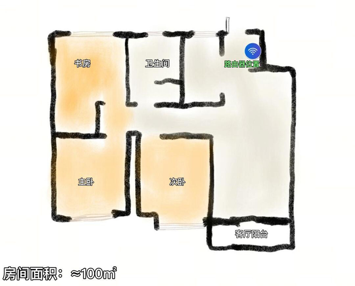 方便大家直观理解,IT之家简单制作了房型图,每个测试区域都有相应的标识对应,路由器位置放在进门口的玄关附近。