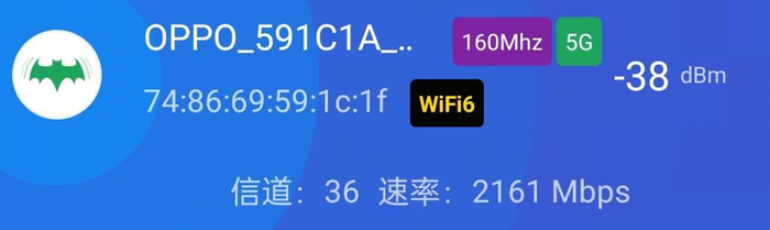 信号强度方面,则维持在-38dBm 左右。