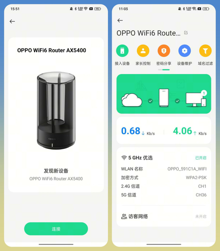 最后是初次安装和后期的管理方面。首先是安装,OPPO 在说明书上有详细的说明,同时也提供了一款名为 OPPO Connect APP,可以自主识别用户的 OPPO 手机产品,自动弹出设置浮窗,用户可以直接快速完成网络初始设置。