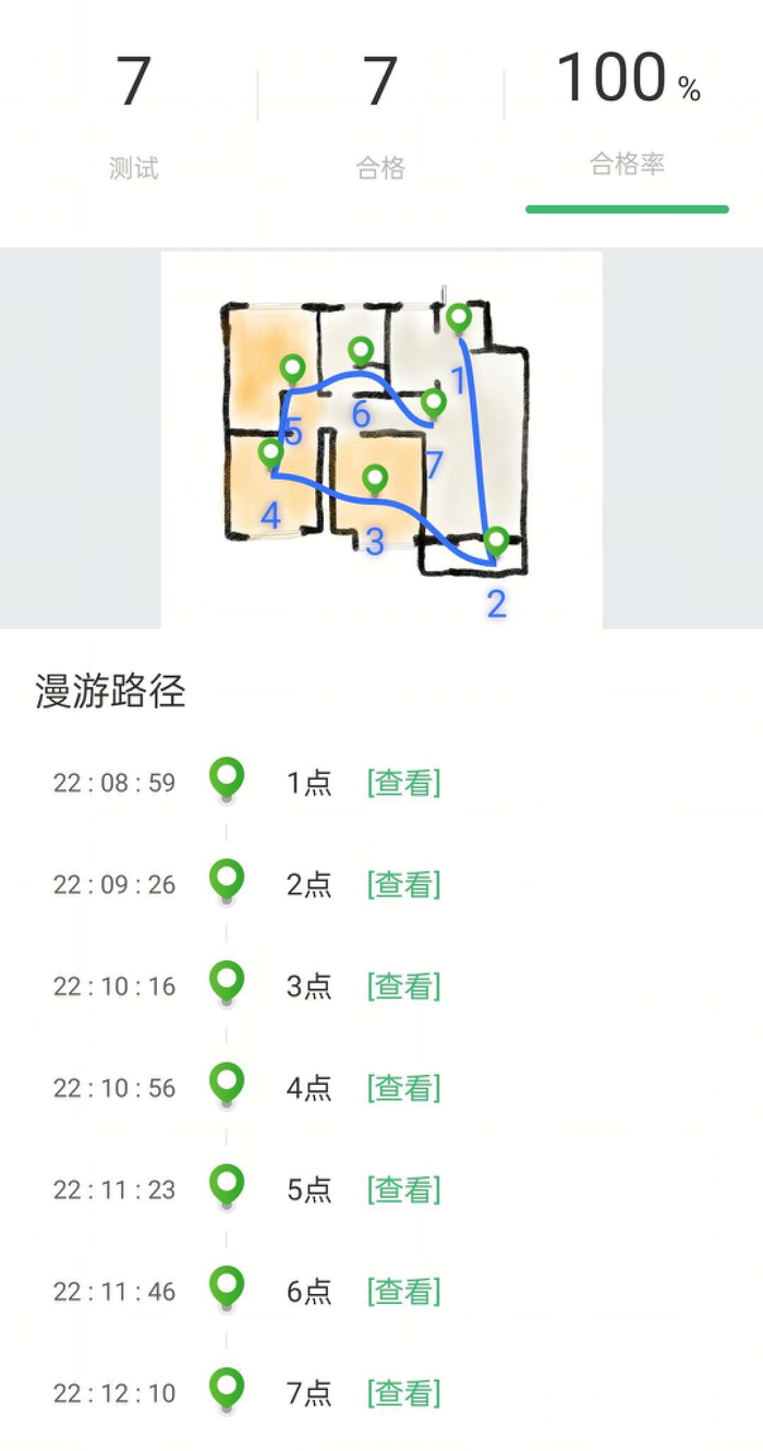 笔者也简单测试了边走边测,如下图所示的 7 个测试点,达到了 100% 的合格率。