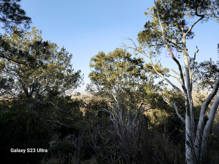 三星Galaxy S23 Ultra最 高支持100X数码变焦,并且在多重防抖的加持下,即便是手持拍摄也能拥有不错的长焦稳定性。同时,在开启20倍焦距后拍摄界面右上角会出现一个预览框帮助我们确定所拍物体在画面中的位置,当预览框变黄时即自动开启AI防抖,在AI防抖模式下即便是手持状态也能拍摄出清晰的照片。