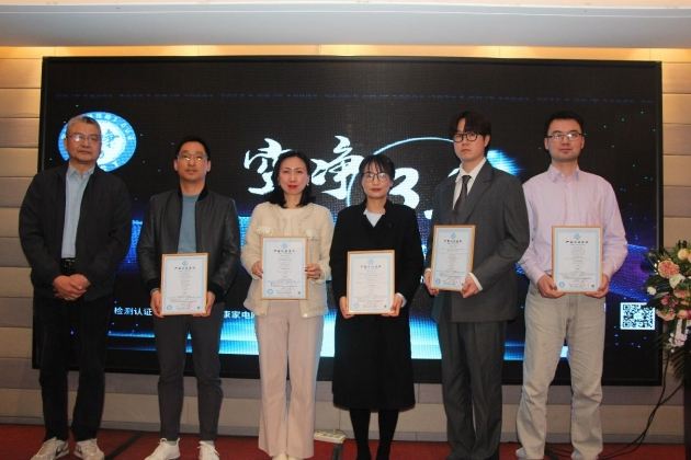 会议现场,中家院(北京)检测认证有限公司认证中心市场部部长卢业发布了2023年获得CHCT“空净3.0”认证的优势产品,这些产品均通过了新国标GB/T 18801-2022《空气净化器》标准的检测要求,性能达到行业较高水平,共计15款。原中国家用电器研究院标准资深专家/教授级高工朱焰为获证企业进行了现场颁奖。