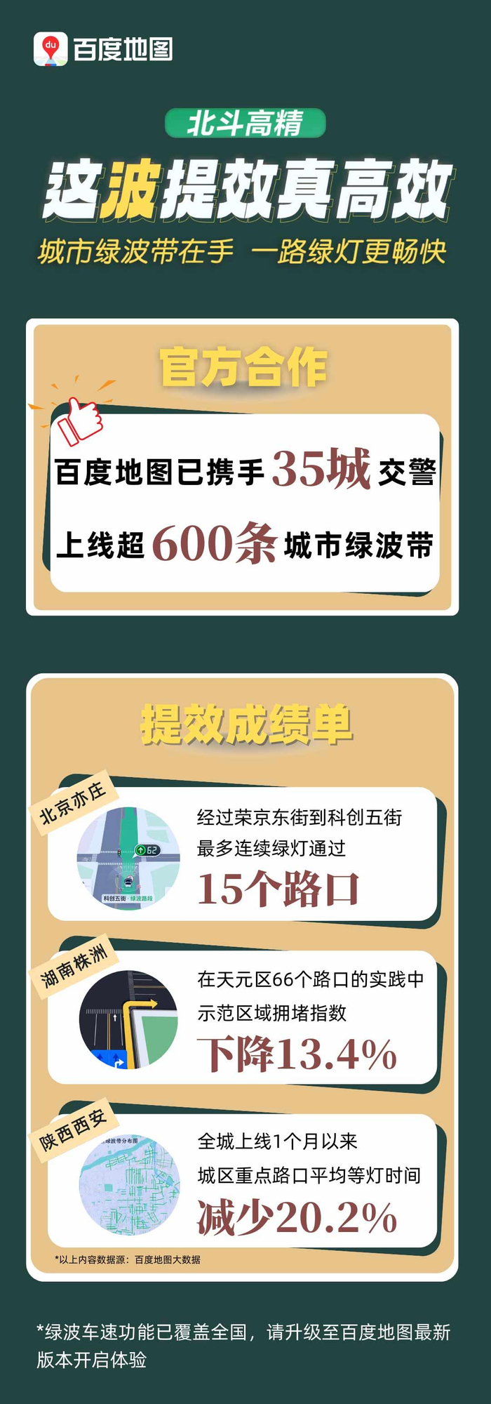 百度地图携手35城交警深度合作!已上线超过600条城市绿波带,全国范围覆盖“绿波车速”
