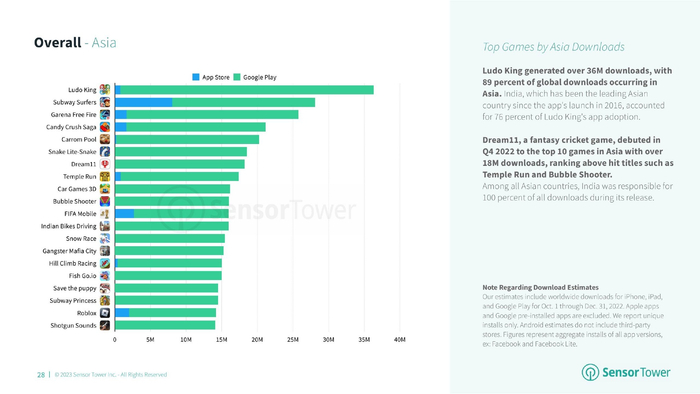尽管下载量放缓,但手机游戏继续占据主导地位