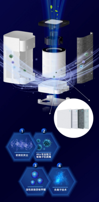 有效滤除99.9%过敏源,AG+银离子复合滤网,为敏感呼吸保驾护航