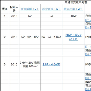 USB Power Delivery 2.0/3.0 - USB PD(USB Power Delivery),PD 充电规格一定得透过 Type-C 界面,装置则没有限定,包含相机、平板、笔电、萤幕等等都可以采用USB PD充电规格,使用支援PD规范的装置充电时,最高瓦数可达100W(20Vx2A)支持多种方案 最高100W,针对多种装置设计,可为笔电充电,特别的是 只支援Type-C(支援QC4.0+),为未来的充电协定趋势。