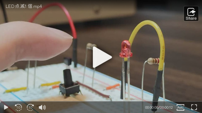 最后,我们通过将前面使用了晶体管的开关电路的按钮开关部分替换为Arduino的通用输入输出端口,实现无需手指按按钮而使LED自动闪烁。在这种通过微控制器控制的情况下,晶体管可以大显身手。