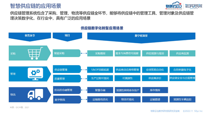 供应链转型需要大量的资金及人力投入,国内众多行业头部企业的数字化转型,已经从最初的探索尝试阶段发展到数字化驱动运营阶段,转型效果显著,部分企业已在内部搭建了智慧化的供应链体系。