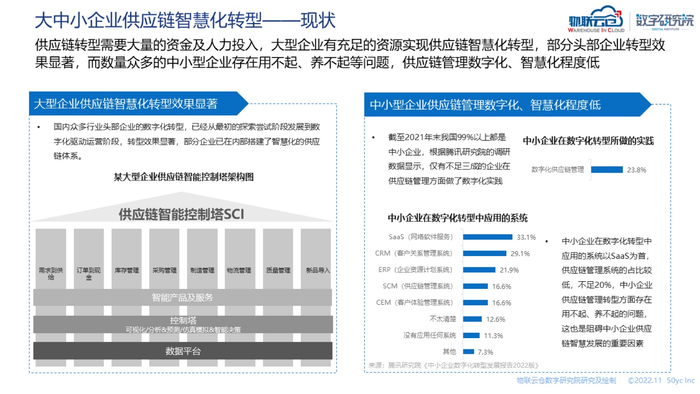 而数量众多的中小型企业存在用不起、养不起等问题,供应链管理数字化、智慧化程度低。