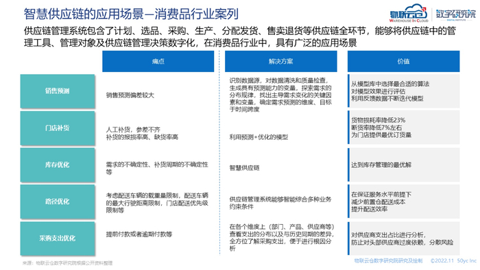 供应链管理系统包含了计划、选品、采购、生产、分配发货、售卖退货等供应链全环节,能够将供应链中的管理工具、管理对象及供应链管理决策数字化,在消费品行业中,具有广泛的应用场景。