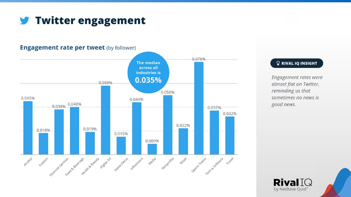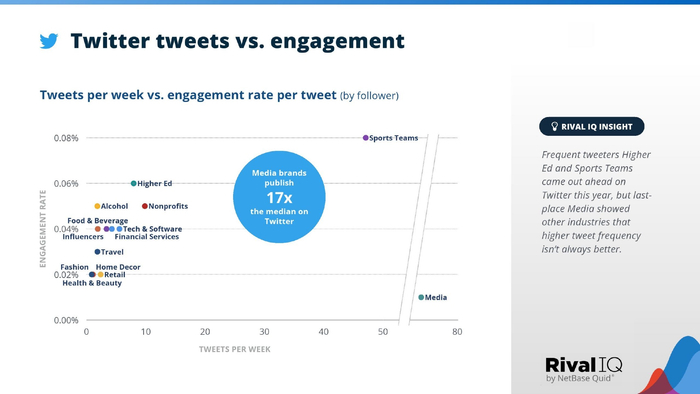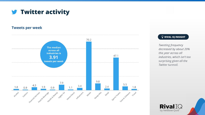 今年,所有行业的平均发帖频率都下降了约20%,考虑到Twitter的动荡,这并不太令人惊讶。