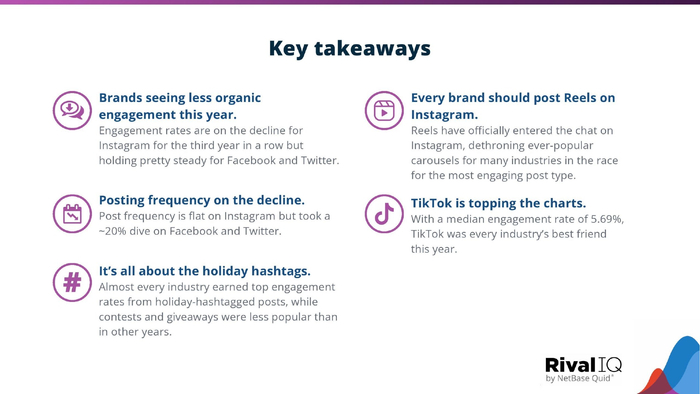 这都是关于节日标签的。几乎每个行业都从节日主题帖子中获得了最高的参与度,而比赛和赠品则不如其他年份受欢迎。